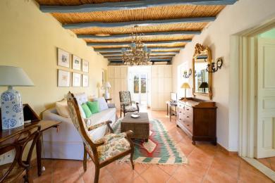 Der Außenbereich ist ebenso beeindruckend, mit mehreren Lounge-Bereichen, einem erfrischenden Swimmingpool, einer Toilette, einer Dusche und einem praktischen Abstellraum. Das Anwesen ist mit Ölheizung und Klimaanlagen in jedem Zimmer ausgestattet.