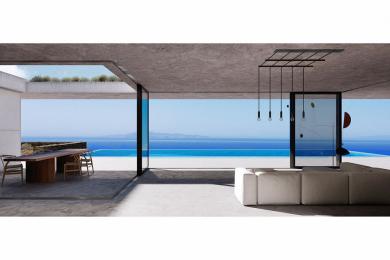This award winning architectural project is located on the West coast of Andros. The dwellings are modern and rigorous and blend beautifully into the Cycladic landscape, making the most of the spectacular views overlooking the sea. The design bears clear lines and is organically entwined in the island’s natural landscape. The aim of the project is to fully integrate the construction within the surrounding area, utilizing the plot’s seamless view and location to create open spaces overlooking the sea. These summer homes are energy efficient with geothermal heating and a construction that minimizes the need for heating or cooling all year round. Covered with ‘green’ roofs, they blend beautifully into the natural Cycladic landscape.