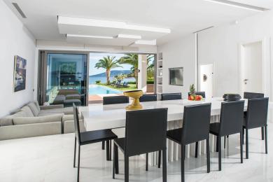 This exceptional seafront villa offers breathtaking views of the Saronic Gulf, Hydra island, and the charming island of Dokos. The modern design of the villa highlights its striking character, with expansive windows that frame the stunning sea vistas. Enjoy the mesmerizing view from both the swimming pool and the balconies of the rooms.