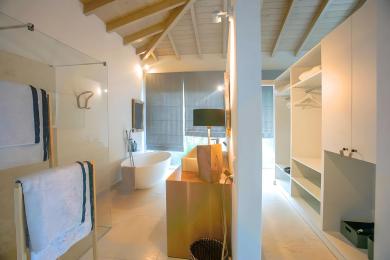 Conceived with privacy and aesthetics in mind, the villa seamlessly integrates into its natural surroundings, creating a harmonious blend between the meticulously landscaped garden and the property. The courtyard, adorned with a mature lemon tree at its center, becomes the focal point around which all bedrooms and the elegant reception area are strategically arranged.