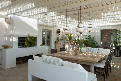 Adorned in white with designer raw wooden furniture, the Villa exudes sophistication. The kitchen is a chef's paradise, arguably the best-equipped Greek Villa kitchen available today, inspiring guests to embark on culinary adventures.