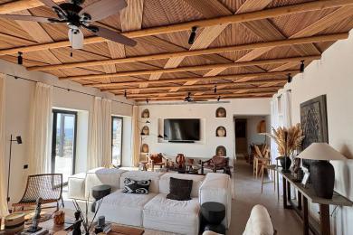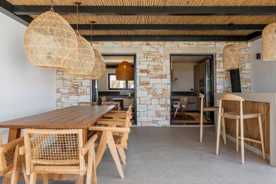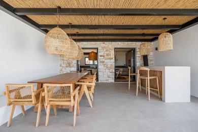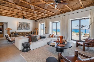 This stunning 357 m² villa (280 m² of living space) enjoys direct access to the sea, nestled in a serene and unspoiled location in the southeast of Paros. While offering privacy and tranquility, it is just a short distance from the charming village of Drios and the famous Golden Beach and Lolandonis Beach.
