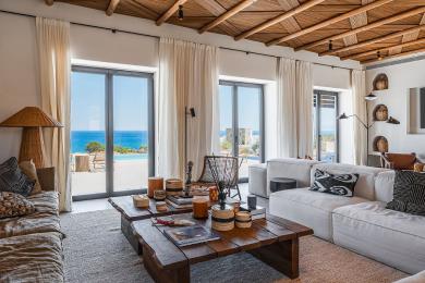 Finally, the breathtaking panoramic sea view completes this unique setting: only a discreet dirt road separates the estate from the endless blue of the Aegean Sea.