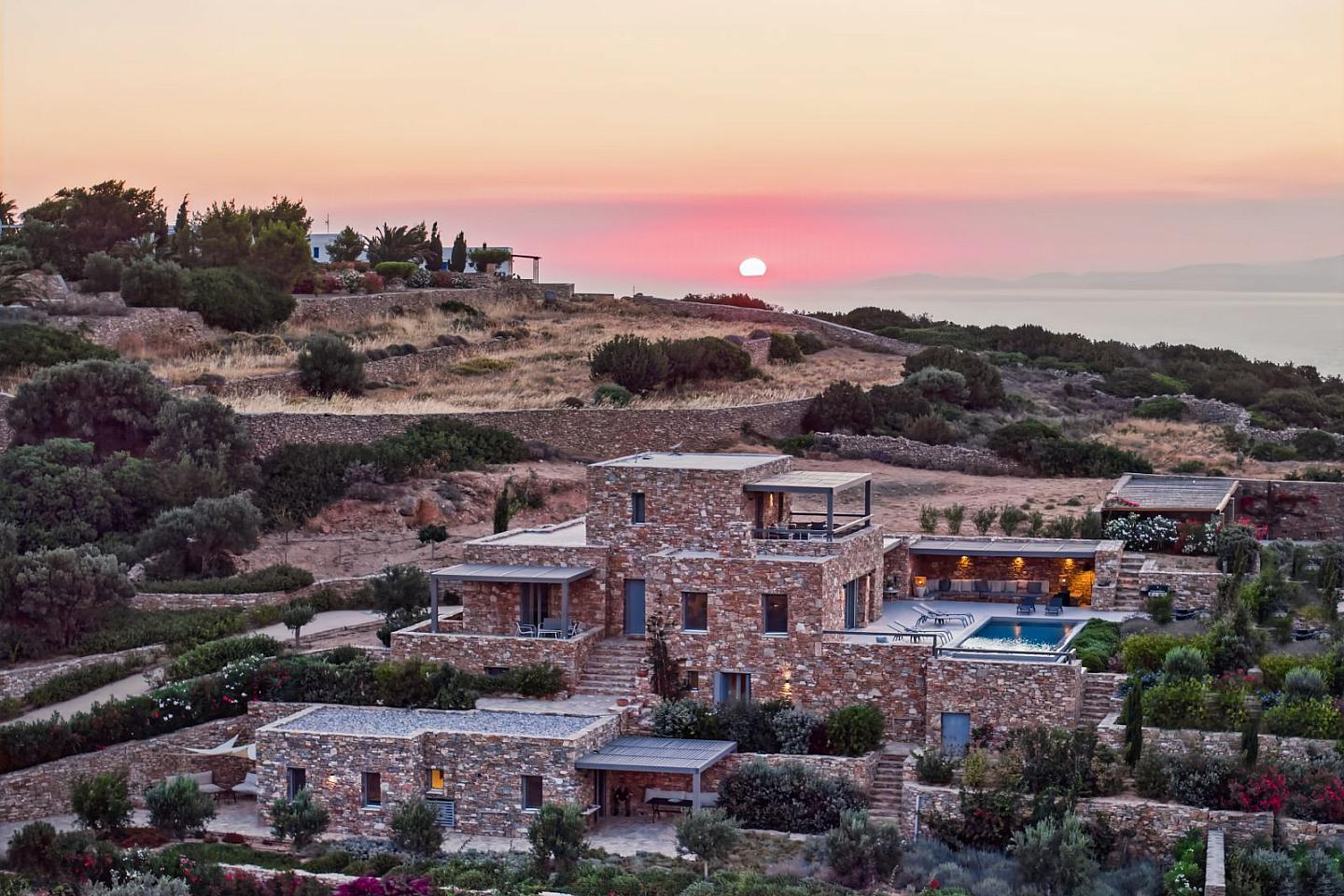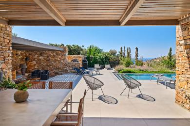 Set on the gentle slopes of Sifnos, this elegant stone-built villa enjoys breathtaking panoramic views over the Aegean Sea. A refined blend of timeless Cycladic architecture and contemporary comfort, the property offers bright interiors, generous living spaces and high-end finishes throughout.