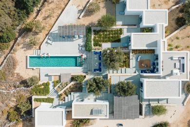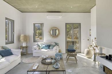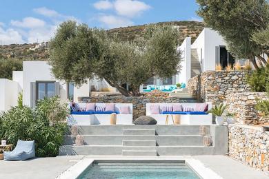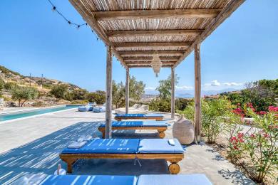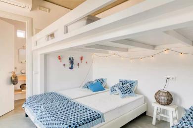Offering 254 m² of stylish living space, the villa features 5 bedrooms and 5 bathrooms, including a spectacular dormitory-style suite that sleeps up to 8 guests — perfect for families, retreats, or hosting in true Cycladic fashion.