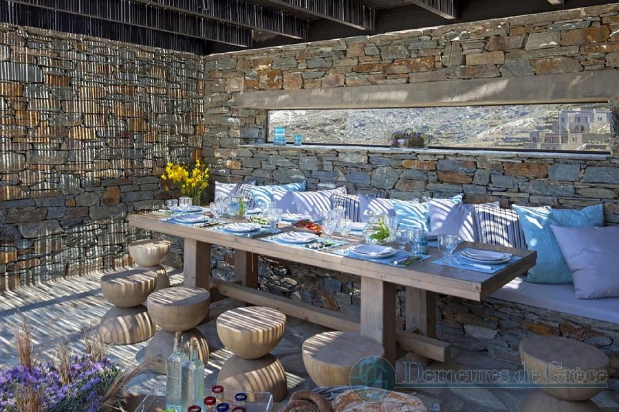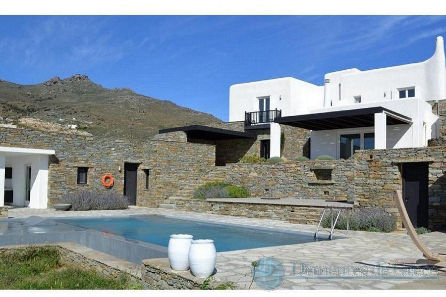 Dessinee par un architecte renomme, cette superbe villa cycladique offre des prestations haut de gamme et une vue mer panoramique a 180o.