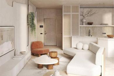 Les fenêtres pleine hauteur optimisent les panoramas spectaculaires de la mer Égée et le paysage en constante évolution. Les appartements sont décorés avec les matériaux et les équipements les plus nobles, tous installés avec art et savoir-faire. La pierre texturée et les bois riches sont omniprésents, tandis que les hauts plafonds et les grandes fenêtres baignent de lumière naturelle les intérieurs spacieux et bien aménagés.