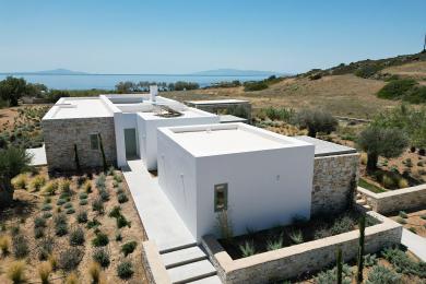Superbe villa neuve idéalement située à quelques pas de la mer, sur la côte sud-est paisible de Paros, à proximité du charmant village de Dryos.
