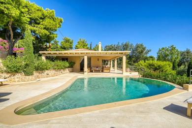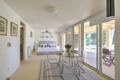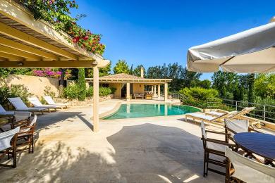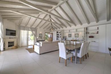 Édifiée sur un terrain paysager d’environ 2 350 m², la résidence développe près de 480 m² et comprend huit chambres avec salles de bains en suite, complétées par une chambre supplémentaire pour invités ou personnel. Conçue pour accueillir jusqu’à 14 personnes, elle bénéficie d’une luminosité naturelle généreuse et s’ouvre harmonieusement sur de vastes terrasses dédiées à la vie extérieure et à la réception.